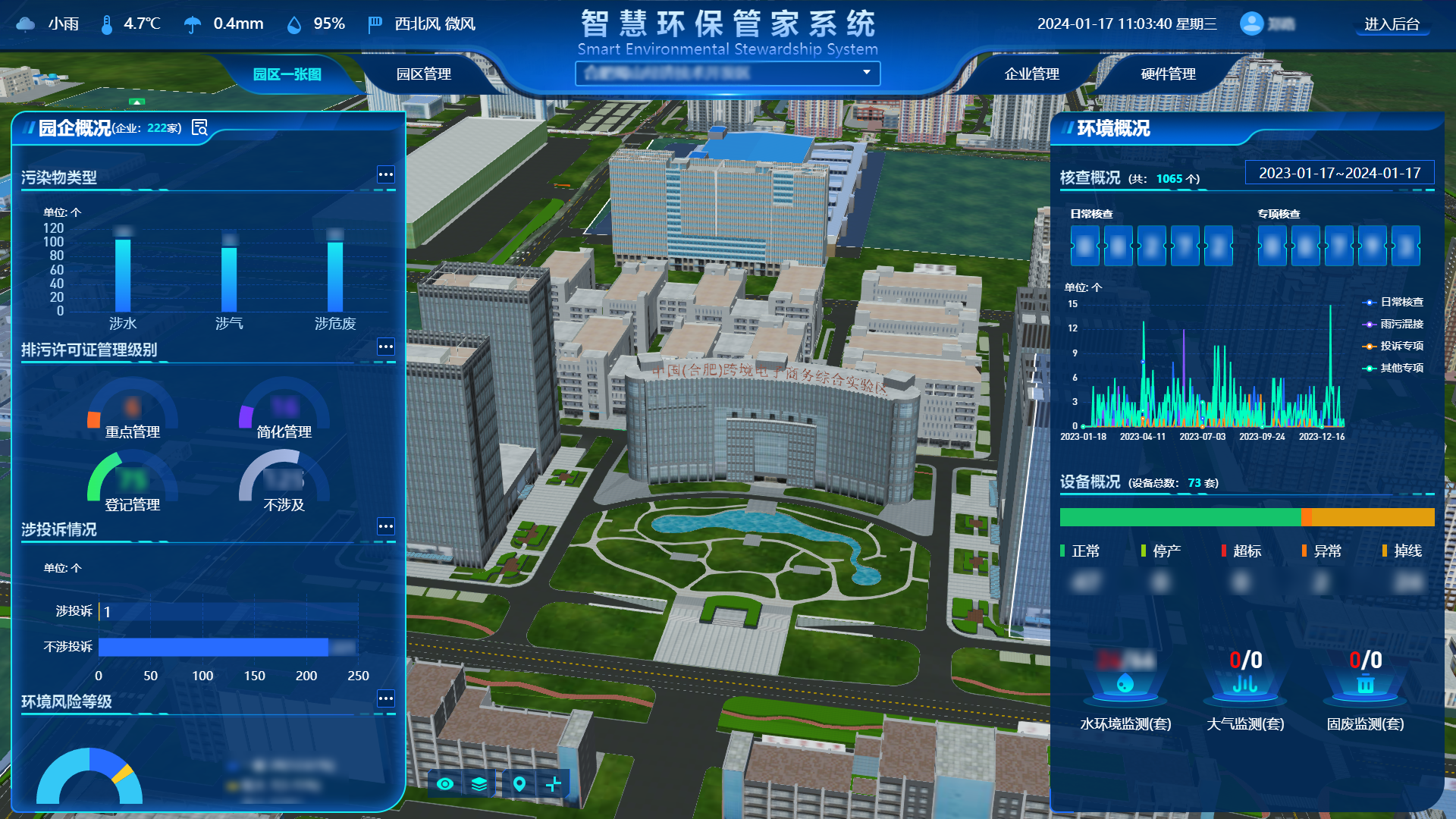 此業(yè)務(wù)板塊包括:結(jié)合《安徽省“十四五”生態(tài)環(huán)境保護(hù)規(guī)劃》、《安徽省“十四五”生態(tài)環(huán)境保護(hù)規(guī)劃》,推動建立面向中小企業(yè)線上線下環(huán)保綜合服務(wù)平臺、構(gòu)建智慧高效的生態(tài)環(huán)境管理信息化體系。 現(xiàn)自主研發(fā)產(chǎn)品包括智慧園區(qū)平臺、工業(yè)污水處理數(shù)字化監(jiān)管平臺、數(shù)字孿生流域防洪系統(tǒng)、小微企業(yè)危險廢物管理平臺等。
